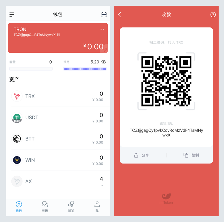 支持以太坊、比特币、EOS、TRON等多条链,以及各种ERC-20代币。
